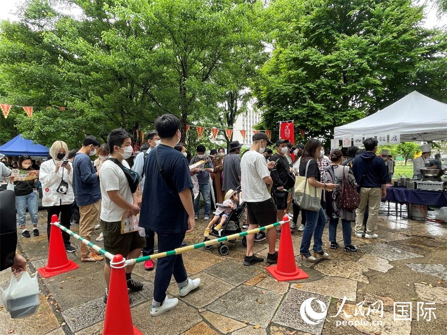 5月14日,活動現場的民眾在美食攤位前排起了長隊。人民網 吳穎攝