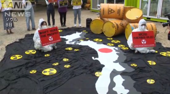 海外網6月8日電 據日本朝日電視臺報道,在8日世界海洋日當天,韓國市民團體在首爾舉行抗議活動,反對日本政府將福島核污水排海。