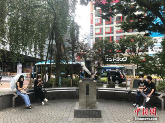 資料圖:日本民眾在澀谷車站前的雕塑旁休息。 中新社記者 呂少威 攝