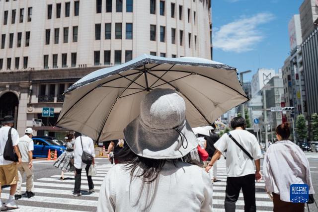 6月26日,行人打著遮陽傘走過日本東京銀座街頭。新華社記者 張笑宇 攝