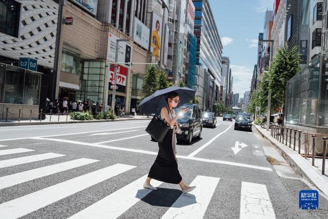 6月26日,行人打著遮陽傘走過日本東京銀座街頭。新華社記者 張笑宇 攝