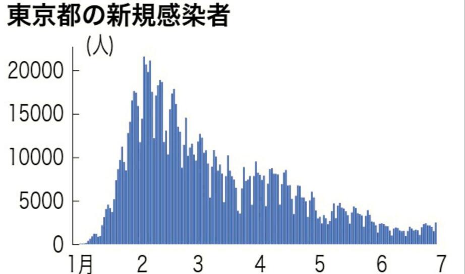 東京都近期的新增確診病例數變化趨勢圖。(圖片來源:《朝日新聞》)