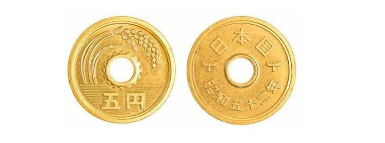 起初,日本發行的5日元硬幣是沒有孔的。但在1949年,由于通貨膨脹,政府決定在當時面值最大的硬幣——5日元硬幣上開孔,以節約原材料。