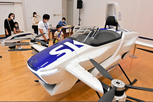 當天,對外展出的是由“SkyDrive”公司開發的“空中汽車”載人試驗機。據介紹,這款“空中汽車”全長約4米,一共有8個螺旋槳,能夠像無人機一樣進行垂直起降。