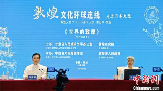圖為敦煌文化環球連線——走進日本大阪《世界的敦煌》線上專題講座敦煌會場!《鼗褪形麄鞑抗﹫D