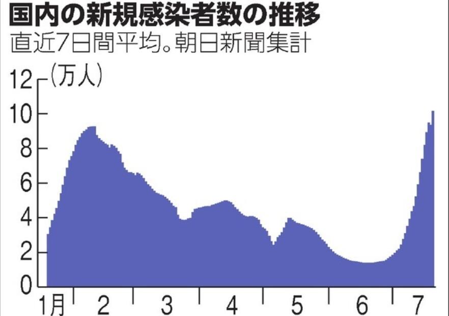 日本國內近期的新增確診病例數變化趨勢圖。(圖片來源:《朝日新聞》)