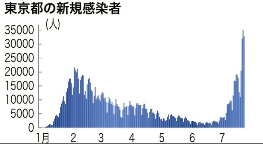 東京都近期的新增確診病例數變化趨勢圖。(圖片來源:《朝日新聞》)