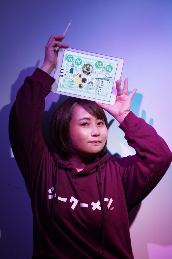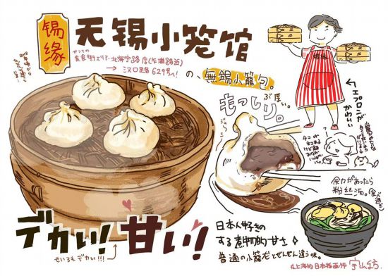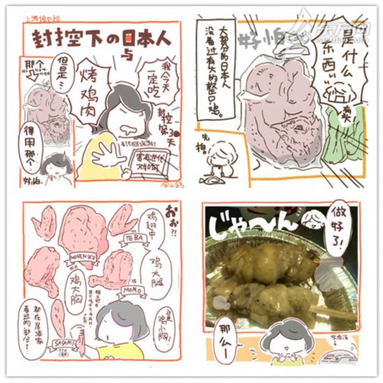 說起吃的東西,宇山紡樂此不疲。她剛來上海的時候,喜歡麻辣燙、文廟菜飯、蘭州拉面、無錫小籠、凱司令栗子蛋糕,最近又迷上了仙草!白罱,朋友推薦我一個好東西,那就是仙草,沒想到Q彈Q彈的,從來沒吃過這么好吃的東西,非常適合夏季去火!闭f起凱司令的栗子蛋糕,宇山紡似乎有點好奇:“凱司令的栗子蛋糕,滿滿的栗子,太好吃了。凱司令是司令創辦的嗎?”她似乎對上海的老牌子興趣盎然,決定回去好好調查一番,再畫入自己的畫作中去。