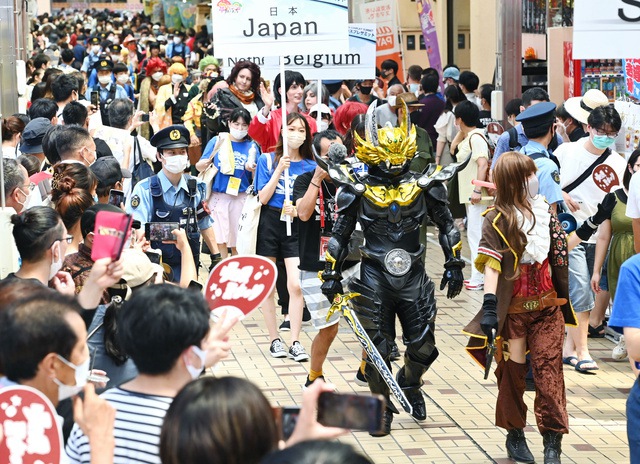 人民網東京8月8日電 據《朝日新聞》報道,日本名古屋市中區的大須商業街于本月7日舉辦了角色扮演(cosplay)游行活動,眾多愛好者裝扮成自己喜愛的動漫、游戲角色出場。當天是“世界Cosplay峰會2022”(WORLD COSPLAY SUMMIT 簡稱:WCS)活動的最后一天,來自法國、泰國等10多個國家和地區的約20人排在隊列最前端,以大須觀音為起點出發沿著商業街列隊行走。