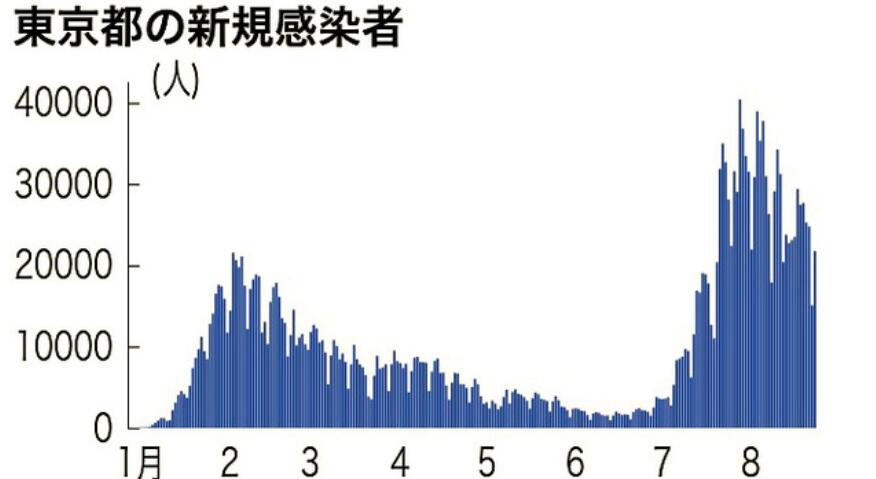 8月30日,東京都新增確診病例1萬4219例,單日新增與上周二相比減少7551例,已連續9天低于上周同期。截至8月30日,東京都最近一周的日均新增確診病例數為1萬7722.1例,是前一周的72.4%。目前,東京都的新冠病床使用率為50.7%,重癥病床使用率為30.7%。
