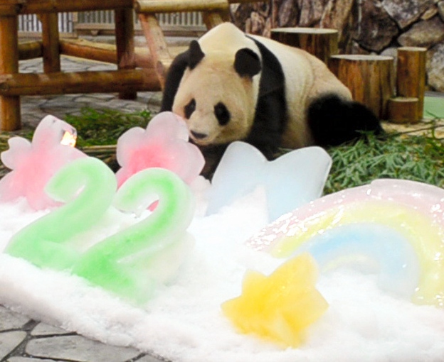 人民網東京9月9日電 據《朝日新聞》報道,日本和歌山縣冒險大世界的7只旅日大熊貓中有3只是9月出生的。今年22歲的“良濱”在9月6日收到了慶祝生日的冰塊。