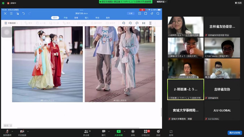 值此中日邦交正;50周年、吉林省與宮城縣結好35周年之際,8月25日,吉林省人民對外友好協會與宮城縣經濟商工觀光部國際政策課共同主辦“友好城市 共享未來”中國吉林省與日本宮城縣青少年線上“虛擬互訪”活動,吉林大學、宮城大學學生代表參加。