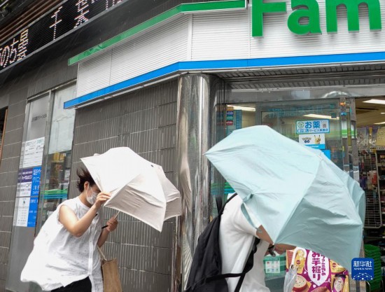9月19日,行人在日本東京街頭冒雨前行。新華社記者 張笑宇 攝