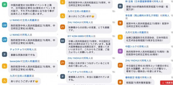 “我們祝福你的生日我的中國,這是兒女們心中期望的歌!痹凇督裉焓悄愕纳铡酚茡P深情的旋律中,招待會落下帷幕。祝愿偉大的祖國繁榮昌盛,祝愿中日關系不斷健康發展!