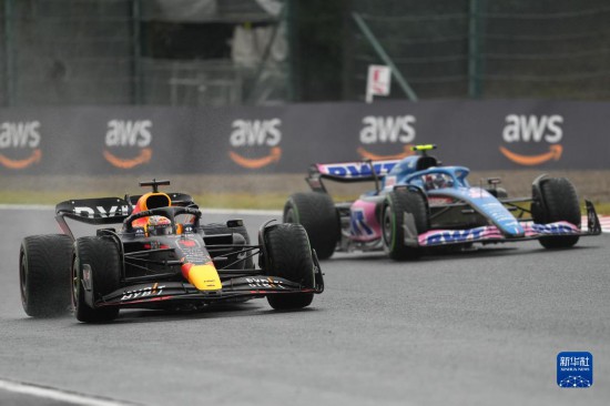 10月7日,紅牛車隊車手維斯塔潘(左)和阿爾派車隊車手奧康在第二輪練習賽中。新華社記者 張笑宇 攝