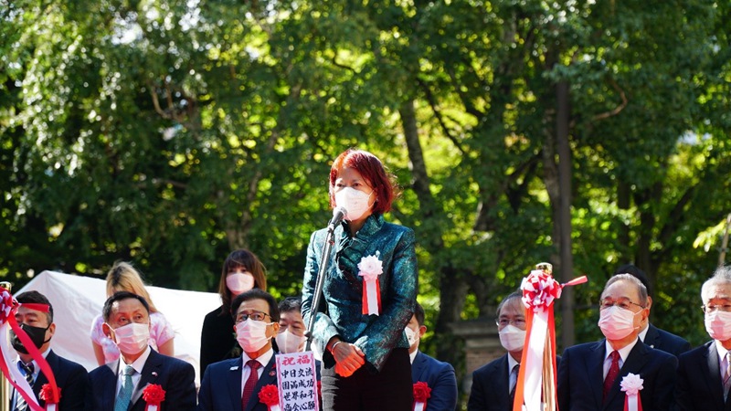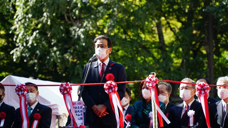 10月8日,“2022札幌中國節”實行委員長、中國駐札幌總領事劉亞明在開幕式上致辭。(吳穎 攝)