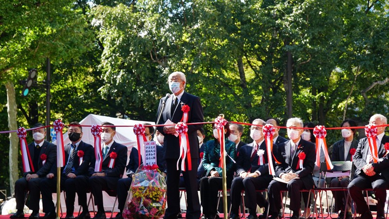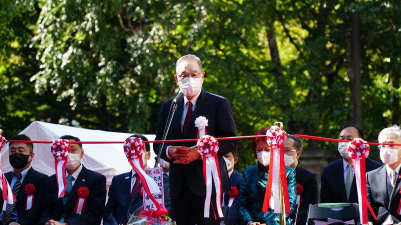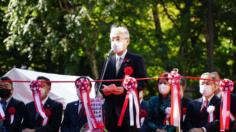 10月8日,北海道日中友好協會會長青木雅典在開幕式上致辭。(吳穎 攝)
