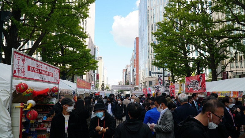 會場共設置22個美食、物產和文化、企業展位,匯聚了水餃、麻辣燙、羊肉串、小籠包、叉燒包、肉夾饃等各地美食,許多展位前都排起長隊。來自日本各地的華人華僑和留學生帶來舞獅、漢服展示、以及水墨畫、二胡等極具民族特色的文藝演出,DIAMONDO YUKAI、桐子、云裳少女等日本演藝明星也登臺獻藝,贏得在場市民的熱烈掌聲。為期2天的活動共吸引約2.1萬人參加。