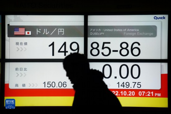 這是10月20日在日本東京拍攝的日元對美元匯率信息顯示屏。新華社記者 張笑宇 攝