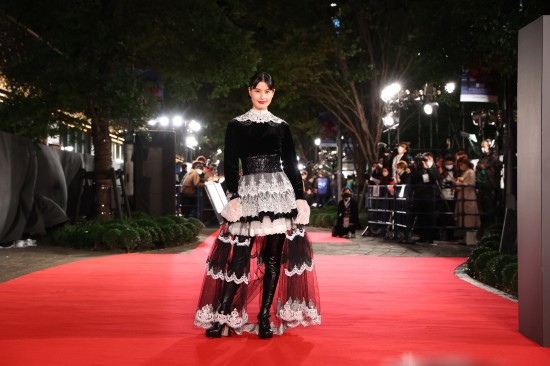 10月24日,擔任本屆電影節形象大使的日本青年演員橋本愛亮相紅毯。東京國際電影節組委會供圖