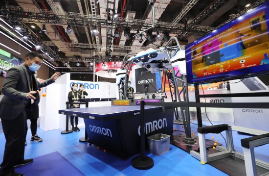 歐姆龍乒乓球機器人在進博會上。