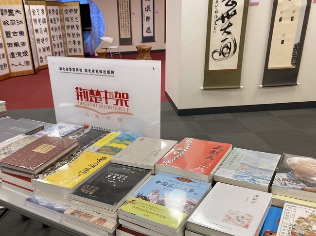 湖北傳媒周東京分會場,展示了由湖北新聞出版局提供的多部書籍。(圖片由東京中國文化中心提供。)