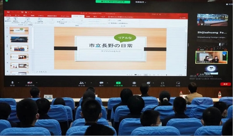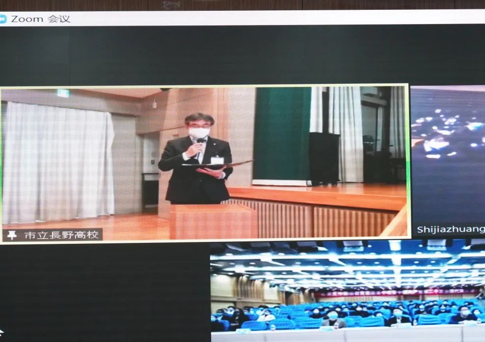 石家莊市政府外事辦公室主任、市人民對外友好協會會長王紅在致辭中表示,石家莊市與長野市結好41年來,兩市在經濟、文化、教育、農業等多個領域開展了廣泛交流與合作。青少年交流是中日民間友好交流的重要組成部分。兩市學子“云相聚”,是促進兩國青少年相互了解的好機會,不僅可以讓雙方感受語言魅力,體會文化特色,還可以開創兩校積極互動的新局面,為中日青少年攜手向未來打下良好基礎。