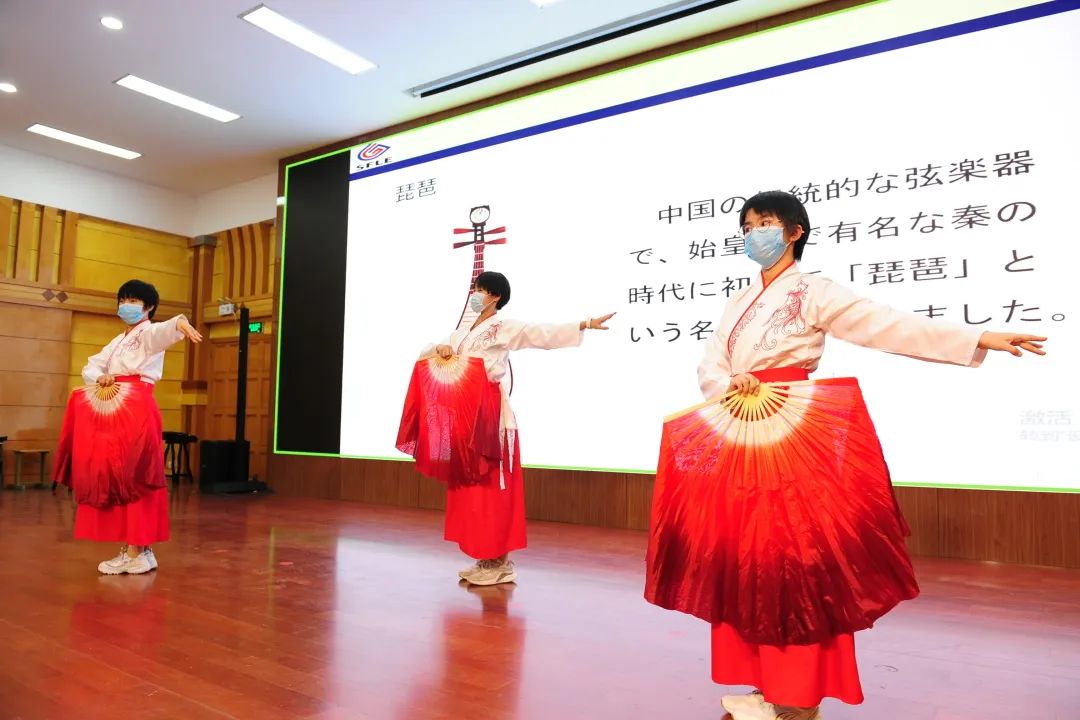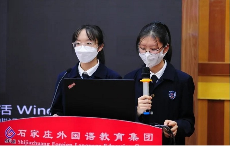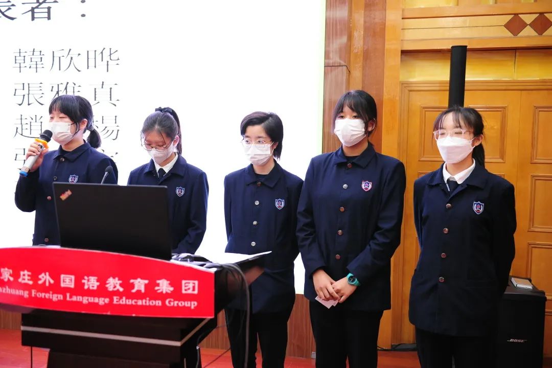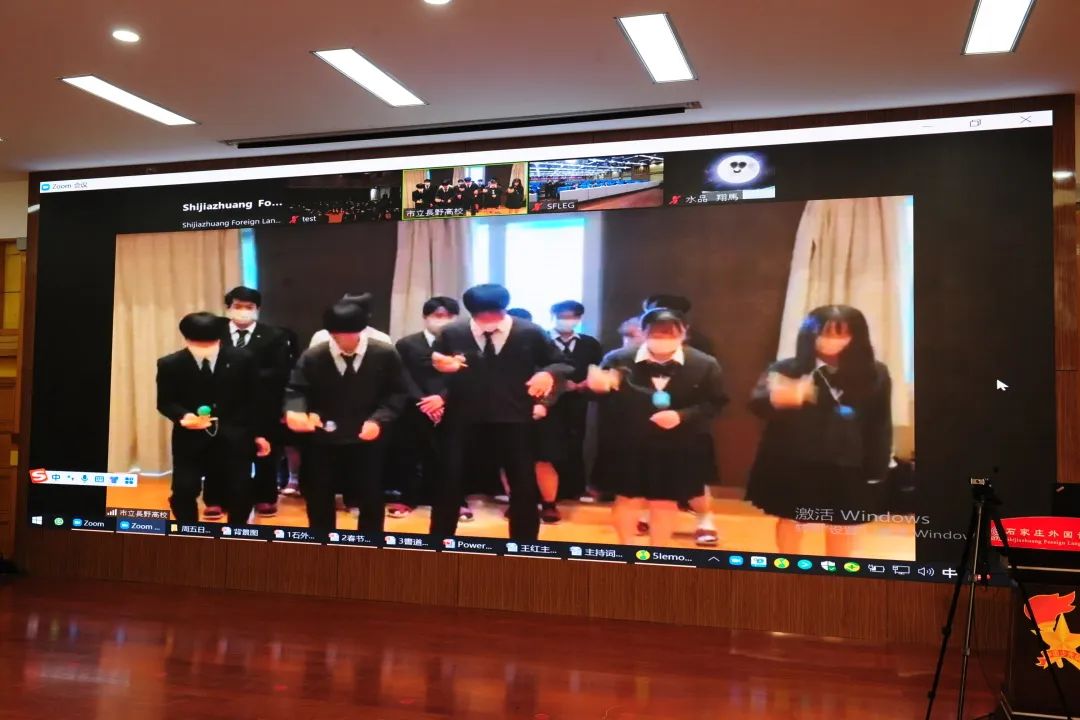 石家莊外國語學校學習日語的學生進行了主題展示。高二日語生用流利的日語向大家介紹了“五育并舉”的課程和豐富多彩的校園活動。