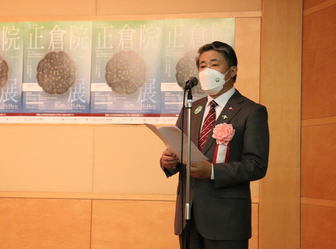 荒井正吾在賀辭中表示,公元7世紀至9世紀之間中國長安成為世界上最具盛名的國際大都市。當時以奈良為中心的日本通過絲綢之路吸收了唐朝的文化和制度,對歷經千余年、在奈良再次回響起盛唐古樂令人感慨萬千、回味無窮。奈良縣一直以來非常重視推動中日文化交流,今后愿繼續為促進兩國人民的相互理解和友好互信貢獻力量。