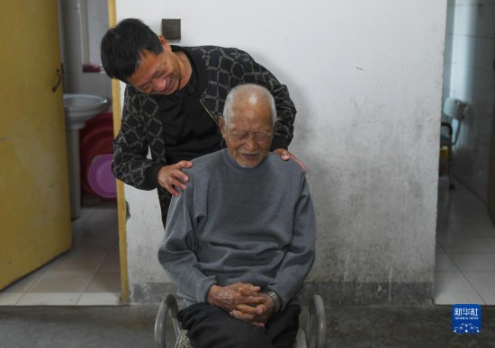 小兒子高鏡明在給高恒發按摩(5月15日攝)。