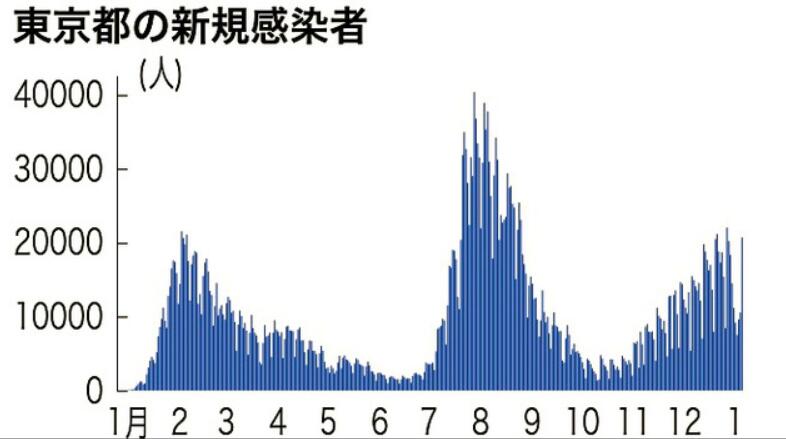1月5日,東京都新增確診病例2萬735例,單日新增與上周四相比增加了2363例。截止至1月5日,東京都最近一周的日均新增確診病例數為1萬1907.7例,是前一周的69.1%。到目前為止,東京都的新冠病床使用率已達到55.3%。