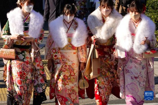 當日,青年男女在日本橫濱參加成人禮,慶祝自己成年。根據日本自2022年4月1日開始施行的《民法》,成人年齡由原來的20歲下調至18歲。每年1月的第二個星期一,日本各地會為年輕人舉辦成人禮儀式和活動。新華社記者 張笑宇 攝