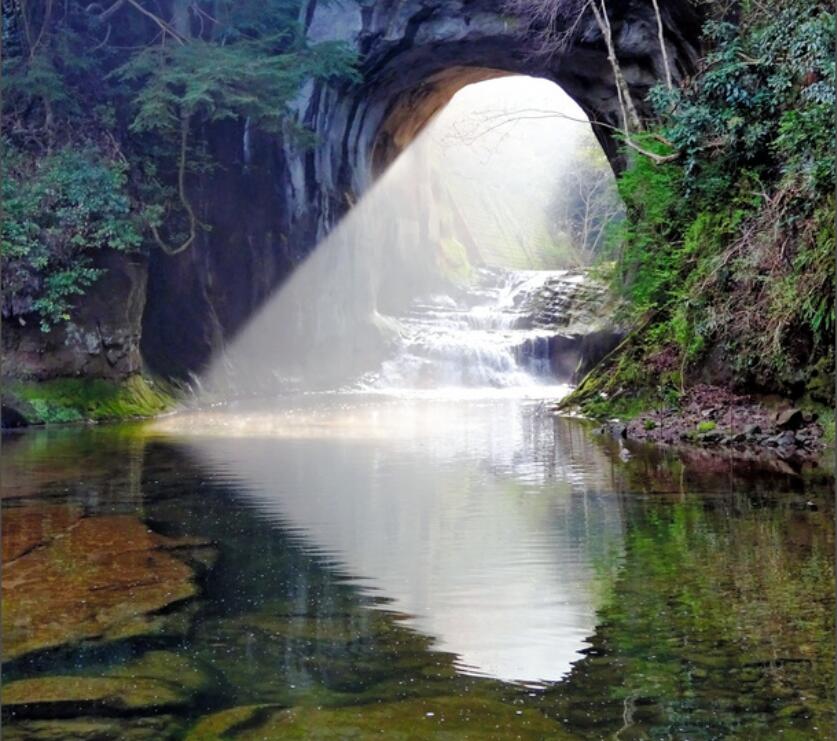 據悉,龜巖洞窟是江戶初期為了給水田引水灌溉而開鑿的,洞窟的直徑大約有10米高,清澈的溪水流淌而過,還有青苔和綠色交相輝映,這一美景被游客譽為“吉卜力的世界”。