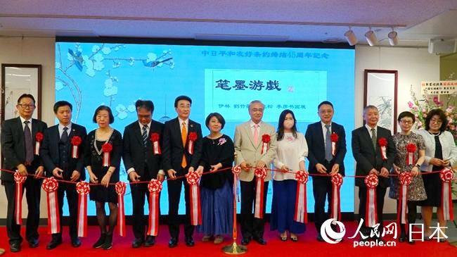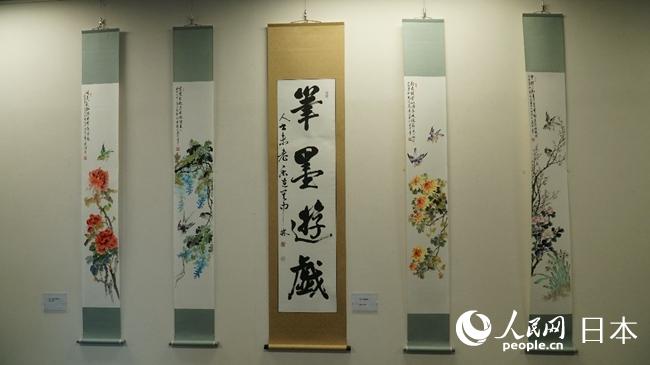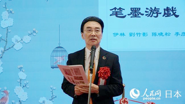 人民網東京3月14日電 (孫璐、許可)當地時間3月11日,由四位華人女性書畫家聯袂出品的“筆墨游戲”書法水墨畫展開幕式在東京中國文化中心舉辦。中國駐日本大使館經商處經濟商務公使宋耀明、在日中國企業協會會長王家馴、中國國際貿易促進委員會駐日總代表史銘、中國交通銀行東京分行行長曹宇青、日本五金礦產有限公司董事長張開賦以及日本國際貿易促進協會業務部部長泉川友樹等中日嘉賓90余人出席了開幕式。
