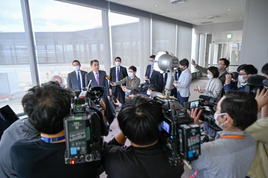當日,駐日本使館公使楊宇、公使施泳、使館相關部門負責人及日本外務省官員等到機場迎接。日本共同社、NHK電視臺、朝日電視臺、TBS電視臺、《朝日新聞》、《讀賣新聞》、《每日新聞》、《日經新聞》及中國駐日媒體到場采訪。