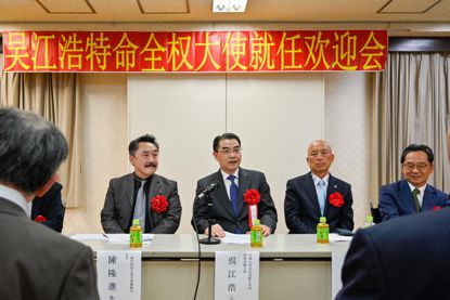 3月23日,吳江浩大使出席旅日僑界舉辦的到任歡迎會。東京華僑總會會長陳隆進、全日本華僑華人社團聯合會會長賀乃和、日本中華總商會評議員會長嚴浩等旅日僑界代表130余人出席,使館公使施泳、公參兼總領事陳巍參加。