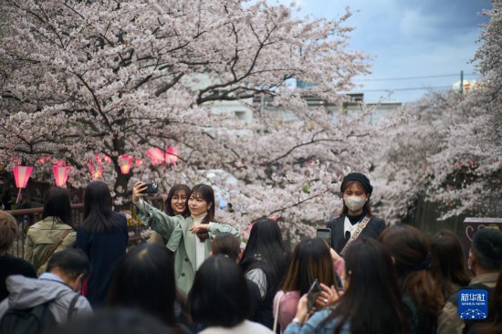3月27日,人們在日本東京目黑川畔賞櫻。 新華社記者 張笑宇 攝