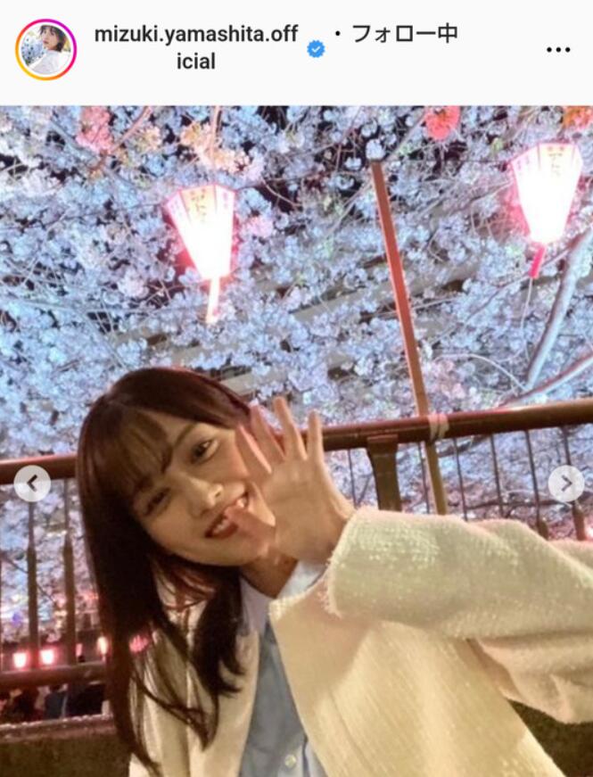 人民網東京4月14日電 日本頻道綜合日本時尚娛樂網站Modelpress報道,日本的春天是櫻花盛開的季節,各地的賞櫻名勝都是人潮涌動。乃木坂46成員山下美月9日更新自己的Instagram官網,稱:“我去賞櫻了,春天到了!辈⑸蟼髁6張照片,全都是以櫻花為背景拍攝的。