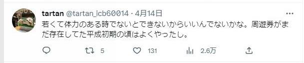 “只有年輕體力好的時候才能(這樣旅游),挺好的。在還有周游券的平成年代初期,我也這么干過!