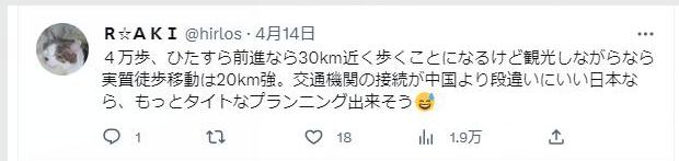 “4萬步,直線距離相當于將近30公里,不過如果是徒步邊走邊逛景點,差不多是20來公里。如果在公共交通更便利的日本,應該能壓縮出一個更緊湊的行程!