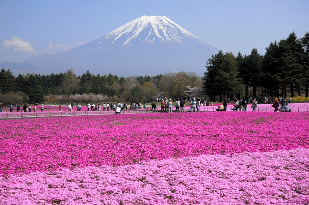 在此期間,當地舉辦了“富士芝櫻祭”慶典,有8種大約50萬株或粉或白的芝櫻盛開在原野上,吸引了眾多游客。4月20日恰逢天公作美,芝櫻美景與富士山交相輝映,迷倒眾多海內外游客。