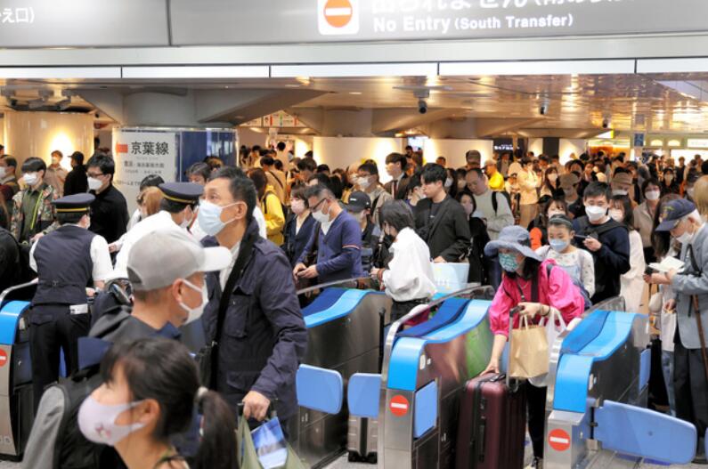 人民網東京5月4日電 據《朝日新聞》報道,5月3日的日本已經進入了五一黃金周長假的后半段,東京車站因回鄉的返程人員以及出游人員等大量乘客的出現而造成擁堵,偶爾還能看到檢票口排起長隊的景象。
