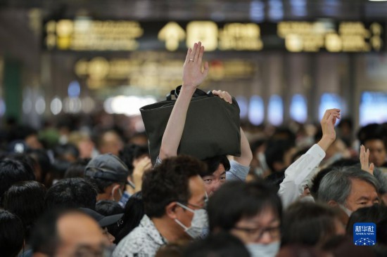 6月3日,乘客在日本名古屋車站等待新干線開車。新華社記者 張笑宇 攝