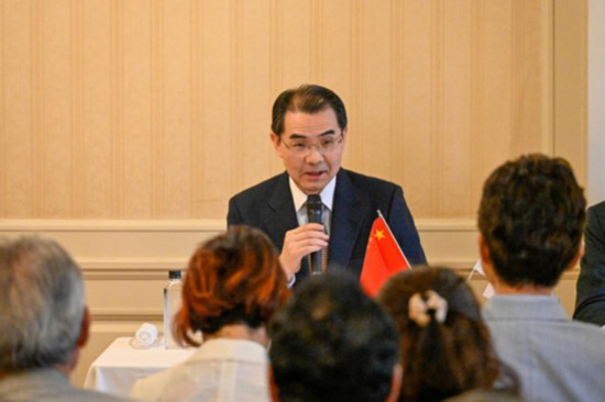 演講結束后,吳江浩同與會人士進行交流。與會人士紛紛高度評價中國外交在習近平外交思想指引下取得積極成果,期待中國和平、開放發展為世界提供更多機遇,呼吁日方認清美對華挑釁遏制事實,發展健康穩定的對華關系,以實際行動維護地區和平、團結與合作。