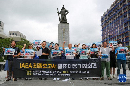 韓國市民團體“阻止日本放射性污染水排海全國行動”5日在首爾光化門廣場舉行記者會,質疑國際原子能機構4日發布的針對日本福島核污染水處置綜合評估報告的可信性,呼吁廢除相關評估報告。