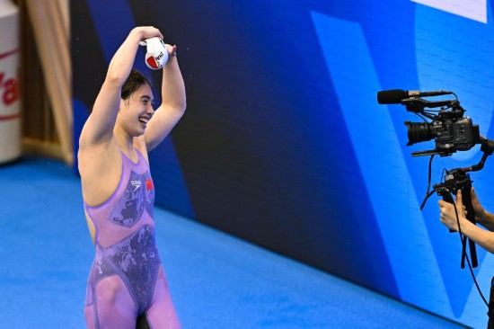 覃海洋摘金短短幾分鐘后,中國蝶泳名將張雨霏在女子100米蝶泳決賽中以56秒12的成績獲得冠軍,如愿以償地擺脫了世錦賽“銅牌專業戶”的稱呼,奪得個人首枚世錦賽金牌。雖然在東京奧運會拿到200米蝶泳冠軍,但張雨霏在世錦賽上一直不太順利,在2022年布達佩斯世錦賽女子蝶泳從50米到200米三個距離的比賽中全部獲得銅牌。