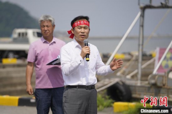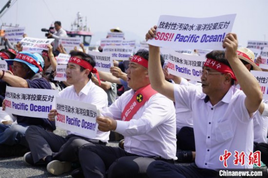 當天14時許,中新社記者來到栗浦碼頭看到,數十名民眾在碼頭示威,他們手舉“海洋不是核污染水垃圾場”“不容一滴核污染水玷污母親之!薄笆乃婪磳Ωu核污染水排!钡葮苏Z,高呼口號,抗議日本福島核污染水排海。還有漁民在現場簽署請愿書,敦促韓國政府就日本核污染水排海向國際海洋法法庭提起訴訟。