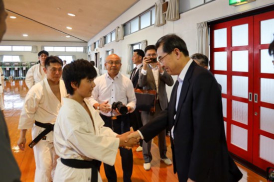 當天下午,吳江浩一行來到日本少林寺拳法總部,會見少林寺拳法集團代表宗昂馬并同青年學員親切交流。吳江浩表示,少林寺拳法是中日文化交流的典范,與中國淵源深厚,在中日交往中發揮了重要作用。希望少林寺拳法集團繼承發揚對華友好優良傳統,不斷為增進中日交流和友誼貢獻力量。