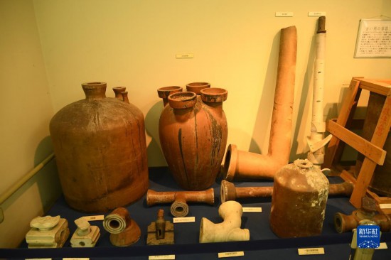 這是8月15日在日本廣島縣竹原市大久野島毒氣資料館拍攝的毒劑儲存罐等。新華社記者 馮武勇 攝