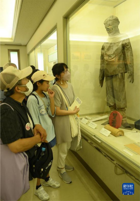 這是8月15日在日本廣島縣竹原市大久野島毒氣資料館拍攝的防護服。新華社記者 馮武勇 攝